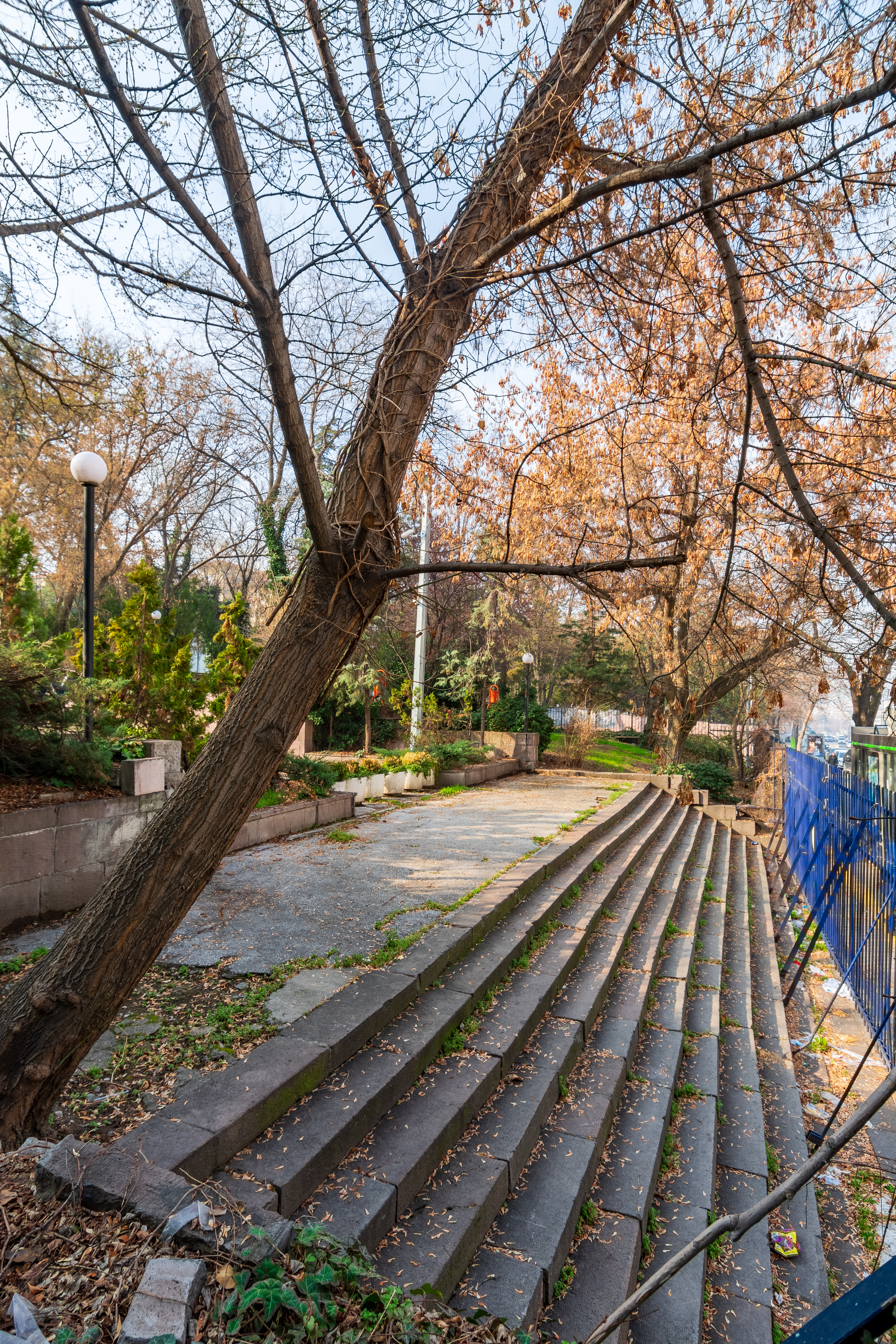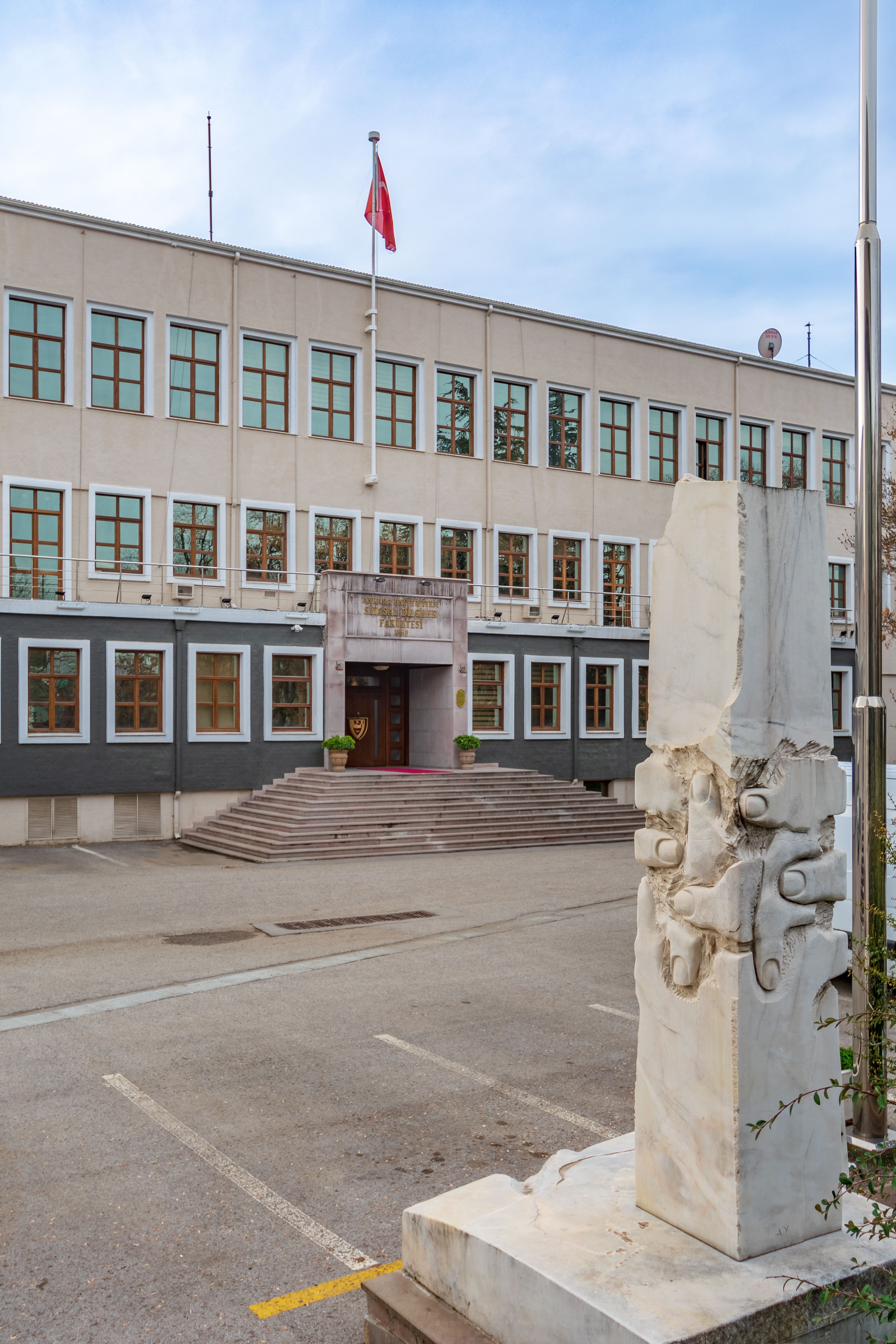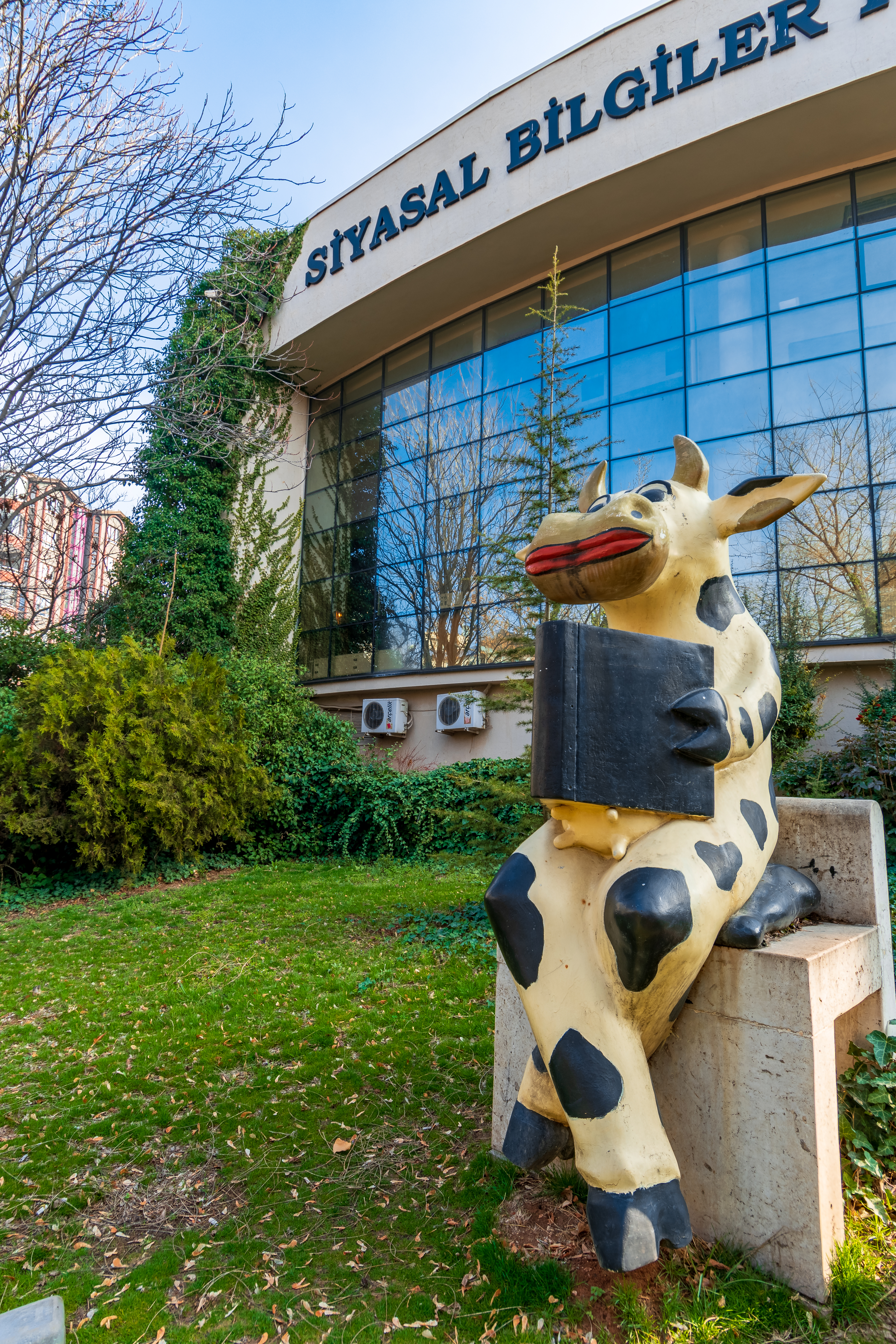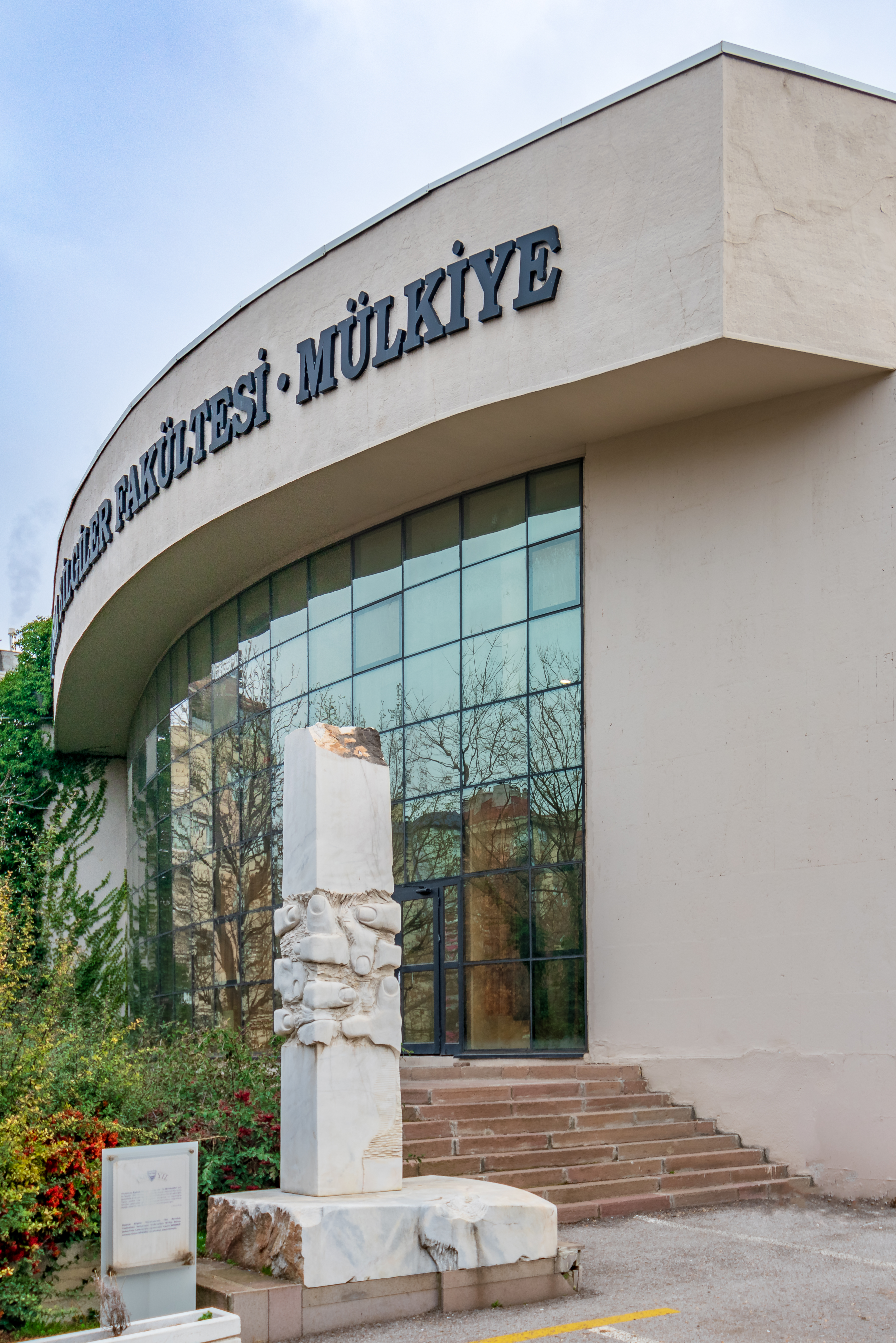 Fakülte dış mekan görünümü: Yapı cephesi, heykeller, yerleştirmeler, bahçe vb. ögeler üzerine geniş açılı fotoğraflar.